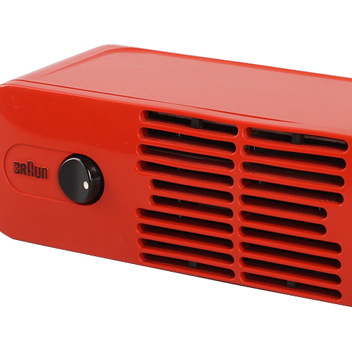 Momentan sind wieder ausgewählte Designklassiker der Firma Braun eingetroffen. Das Team um Chefdesigner Dieter Rams prägte ab der Mitte der 1950er Jahre das deutsche Industriedesign und setzte in der BRD Maßstäbe für innovative Produktgestaltung. Heute zeige ich Ihnen den Haartrockner BRAUN HLD 4 von Dieter Rams, der im Entstehungsjahr 1970 bereits eine gewisse Zäsur innerhalb der Produktfamilie von Braun und Rams darstellt. Auffällig sind die prägnante Farbe des Objekts und die Anordnung der Lüftungsschlitze, die als Zitat aus früheren Produkten des Herstellers verstanden werden könnte. Die Firma entwickelte im Laufe der Zeit eine Systematik innerhalb ihres Sortiments (Produktfarbe und Produktgrafik, Bedienelemente, Schalter, Belüftung etc.) um dem Gebraucher Hilfestellungen bei der Benutzung seiner Elektrogeräte und eine Zusammengehörigkeit des Erscheinungsbildes zu geben. Mit diesem kleinen Haartrockner HLD 4 blickte Dieter Rams scheinbar zurück auf 15 Jahre Designtätigkeit bei Braun und nahm humorvoll Bezug auf frühere Arbeiten. Damit gelang ihm ein erfolgreicher, markanter Klassiker. Das Objekt ist sehr gut erhalten und soll seinem Liebhaber auf Reisen beste Dienste erweisen. (momentan noch in der Farbe Rot erhältlich, in Gelb ist die Designicone verkauft) +++ EUR 100,—