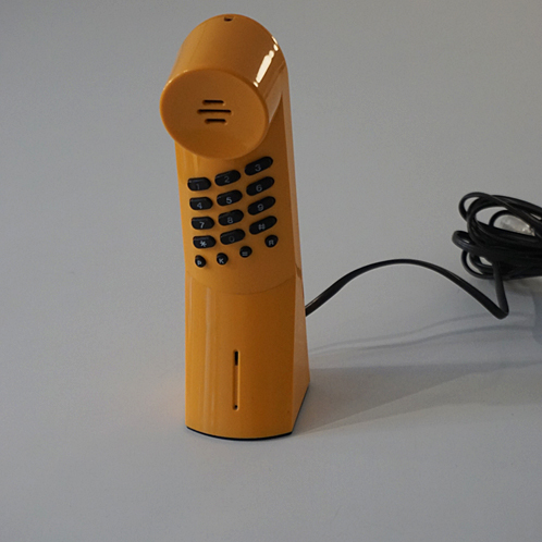 Heute rares Schwedisches Produktdesign, Fido-Phone von Mats Ekstrand aus den 1980er Jahren. Es gibt nicht viel zu sagen über diesen humorvollen und freundlichen Entwurf. Bemerkenswert ist, dass trotz der zeittypischen Details die Brauchbarkeit des Alltagsgegenstands nicht eingeschränkt zu sein scheint. Verzeichnet im Digitalen Technik Museum. Super Farbe und Gestaltung! +++ EUR 90,—