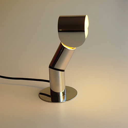 Die Leuchte hat mittig am senkrechten Arm ein Gelenk, durch das der Neigungswinkel verstellt werden kann. Der Lampenschirm wird auf das Leuchtmittel gesteckt und kann so in alle Richtungen bewegt werden. Durch diese flexiblen Einstellungsmöglichkeiten kann man blendfreies Licht, indirektes Licht und Licht zum Lesen schaffen. Sie können die Leuchte auch als Wandleuchte einsetzen. Sie ist aus verchromtem Messing sehr hochwertig gearbeitet und in schönem Originalzustand (Maße: max. Höhe 24 cm).
