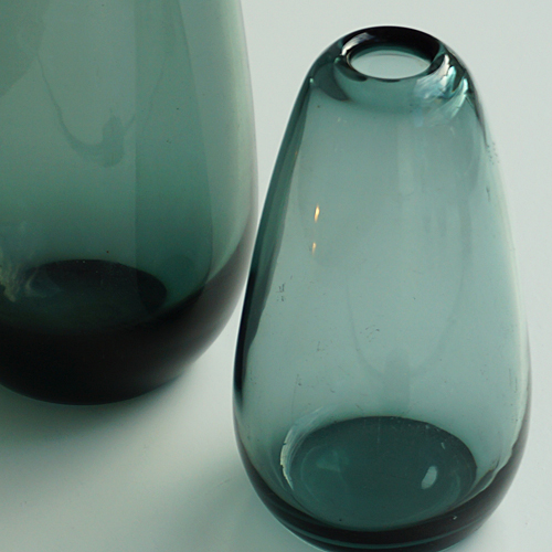Diese Vasen hat Wilhelm Wagenfeld 1951 für die Württembergische Metallwaren Fabrik WMF entworfen. Es handelt sich um zwei Objekte aus seinem Werkverzeichnis mit der Formnr. 445 in einwandfreiem Zustand. Mit diesen Designklassikern biete ich Ihnen weitere Glasobjekte der Nachkriegsmoderne an, die in ihrer Zusammenstellung mit anderen Entwürfen in meinem Geschäft ein bedeutendes Werk der 1950er und 1960er Jahre zeigen. +++ EUR 90,—